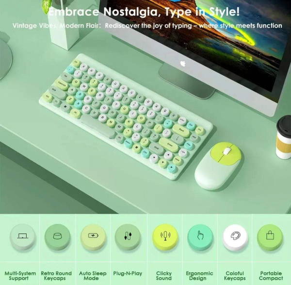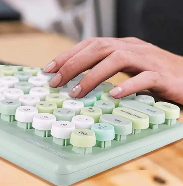 Porque combina estilo, funcionalidad y comodidad. Con su estética vintage inspirada en máquinas de escribir, teclas redondeadas y diseño minimalista, transforma tu espacio de trabajo en algo especial. No solo luce bien, también se siente bien al usarlo.