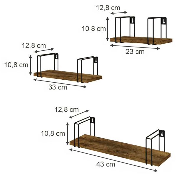 Este paquete incluye 3 repisas de distintos tamaños, para que puedas jugar con la disposición y ocupar distintos espacios: